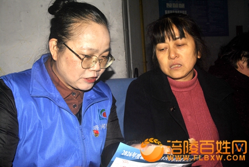 崩土坎社区书记卢小红一行5人,来到两江名品安置房小区2栋21楼4号,只见佩戴党徽的卢小红书记,对身边的潘建居民说:“2026的城乡居民医保又开始了,我们来宣传交医保......”“在手机申报居民医保,很实用,家人生病住院、门诊买药都能报!”