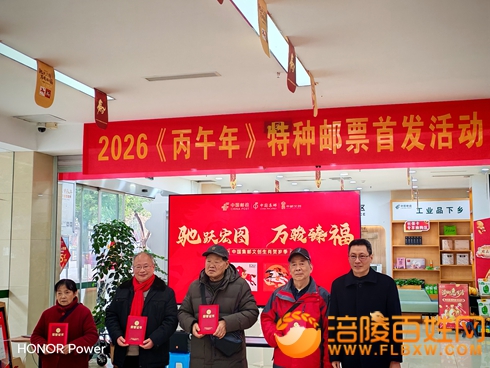 (夏斐然)重庆涪陵中邮涪陵片区分公司大门口,今天(2026年1月5日)早上8点18分钟,只见三十人余人集邮爱好者聚在一起,8点30分,100余名集邮爱好者走进邮政大厅,鲜红的大字十分耀眼:2026《丙午年》特种邮票首发活动。人们排队购买:马年小本票57套、套票1317套。集邮爱好者唱马歌、讲马年集邮知识、表彰集邮爱好者.....马到成功,进行抽奖活动......驰跃宏图,万骏臻福迎马年邮票。