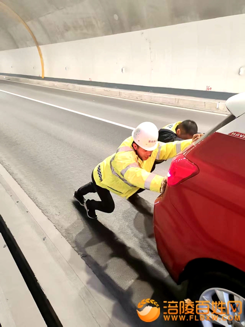 巡查班长在隧道巡查时,发现一辆故障车辆滞留。隧道内视线受限、车流较大,存在极大安全隐患。巡查人员立即启动应急处置流程,做好现场安全防护,并第一时间联动高速交巡警赶赴现场。双方紧密协同、高效配合,快速将故障车辆安全推出隧道,转移至安全区域等待专业救援,全程规范有序,未影响道路正常通行。